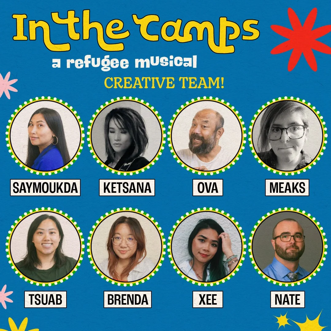 In the Camps: A Refugee Musical is a play written and produced by Saymoukda Duangphouxay Vongsay. Using songs and humor, In the Camps tells the story of four friends who’ve escaped communist Laos; landed in the same refugee camp; and are hoping to begin a new life in the United States.