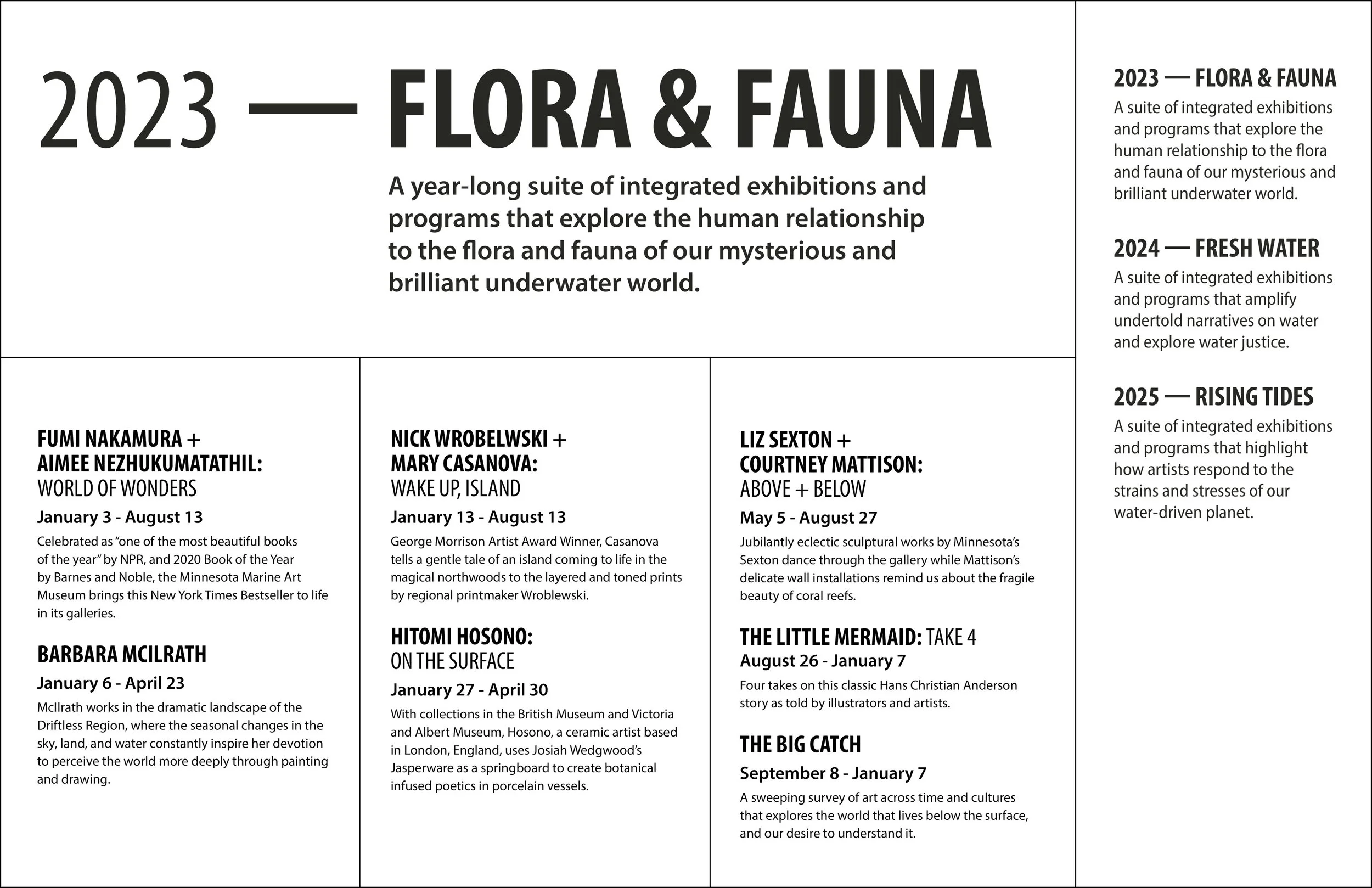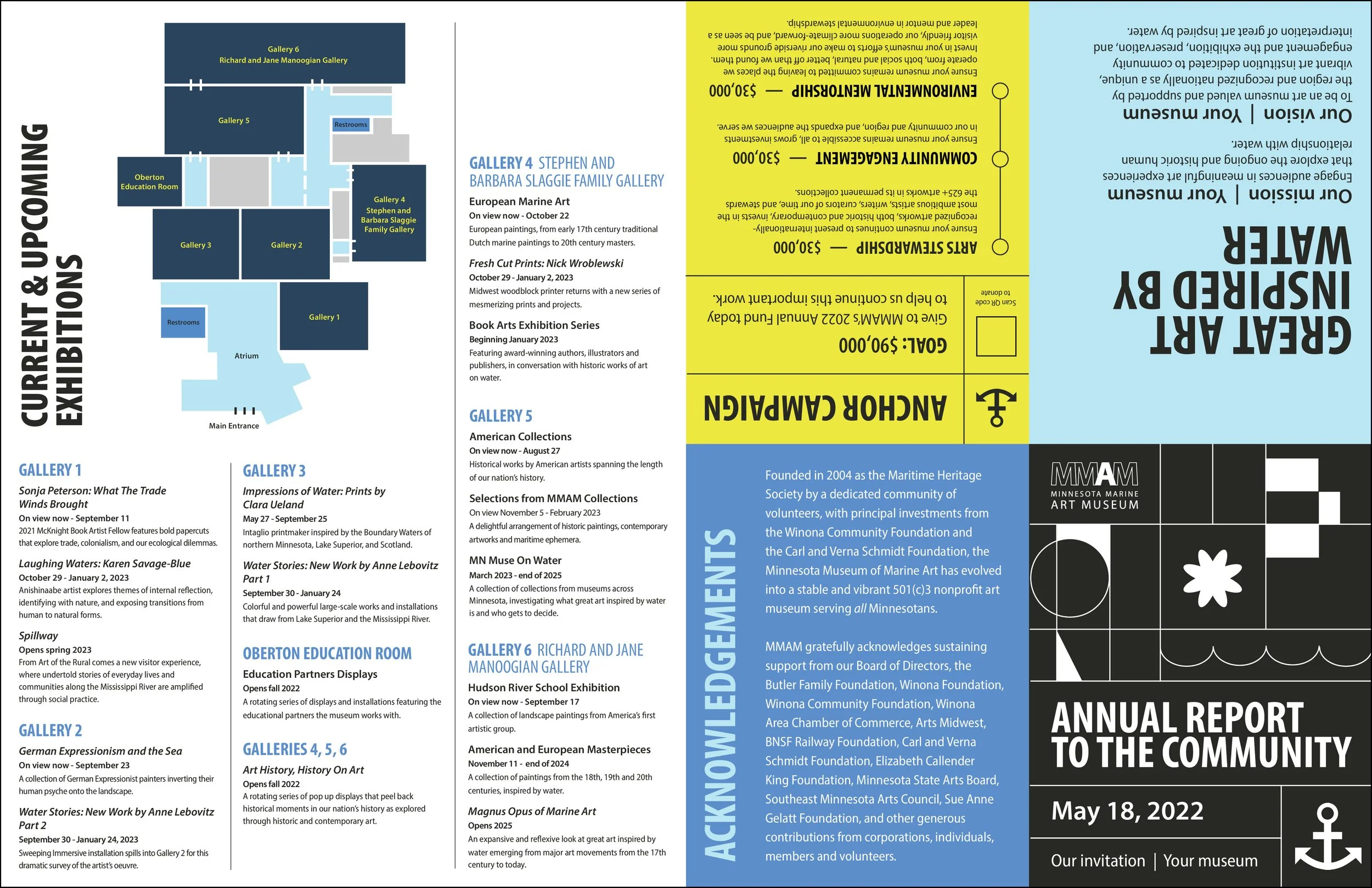 In May 2022, the Minnesota Marine Art Museum (MMAM) reached out to Banana Leaf Collective for help with a brand pivot that would reflect the organization’s current leadership transition and growth. While MMAM was not ready for a complete overhaul of its visual identity, the museum wanted a brand refresh that involved an updated logo; color palette; and typography guidelines.